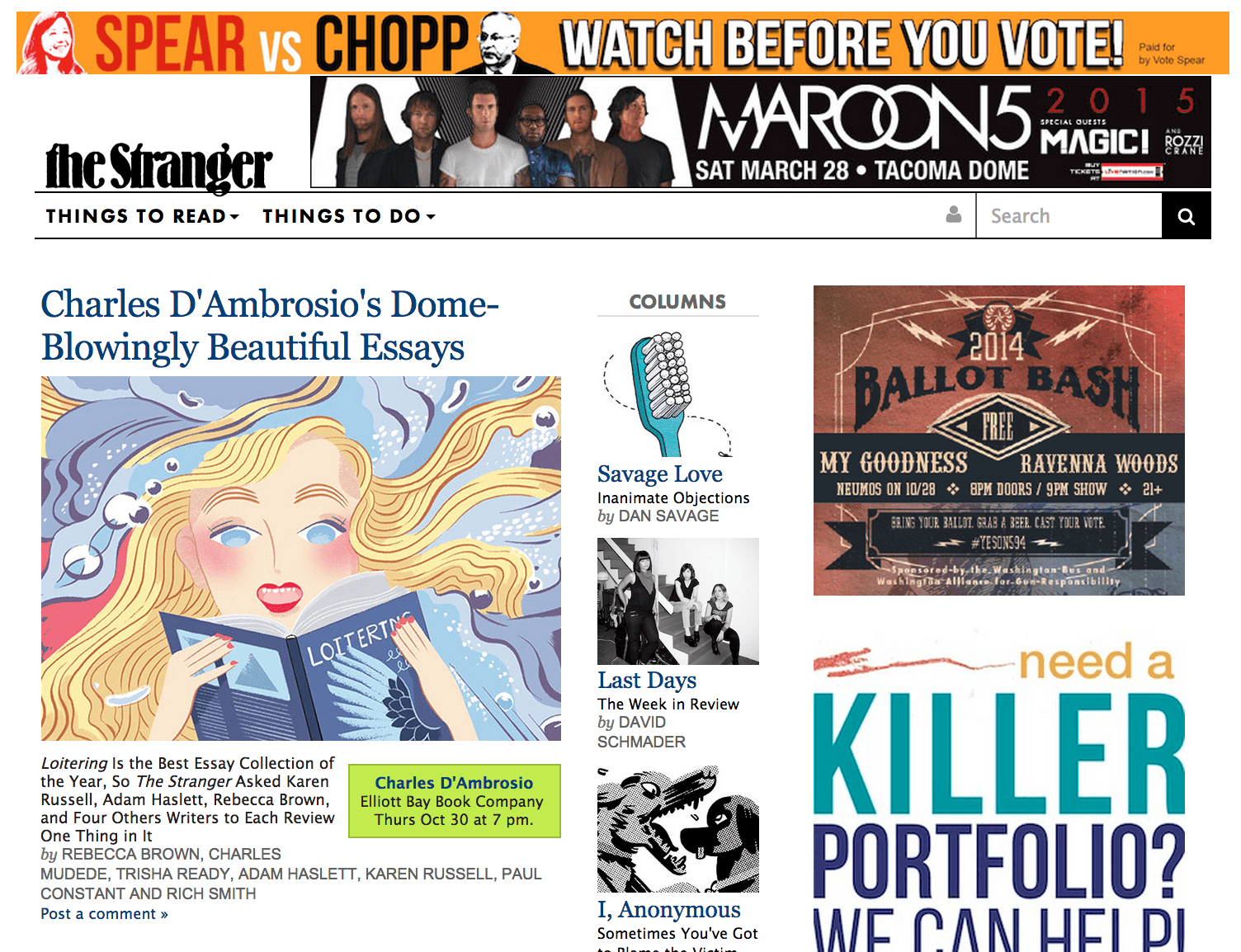 Screen Shot 2014-10-28 at 7.41.42 PM Published Tuesday, October 28, 2014 - 8:26 PM at 1504 × 1154 in Staff changes at The Stranger continue ahead of 2016 move from 11th/Pine Stranger.com rolled out a spare, clean-cut redesign over the weekend