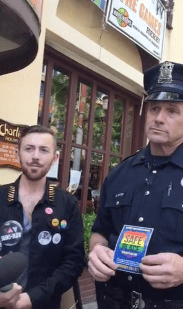 Screen-Shot-2015-05-26-at-9.37.43-PM-600×1011 Published Wednesday, December 20, 2017 - 12:11 PM at 600 × 1011 in A blast from the past: Q Patrol resurfaces on Capitol Hill Officer Ritter and Doug Vitaly of the LGTBQ Task Force introducing the new Safe Space program in 2015 (Image: CHS)