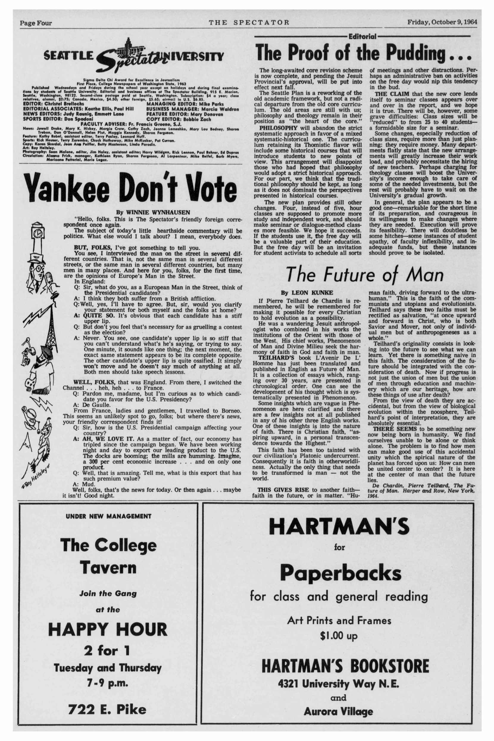 Spectator 1964-10-09 p 5 College Inn Happy Hour Published Wednesday, July 3, 2019 - 11:45 AM at 1660 × 2487 in Capitol Hill Community Post | ISO old ads for Life On Mars mural