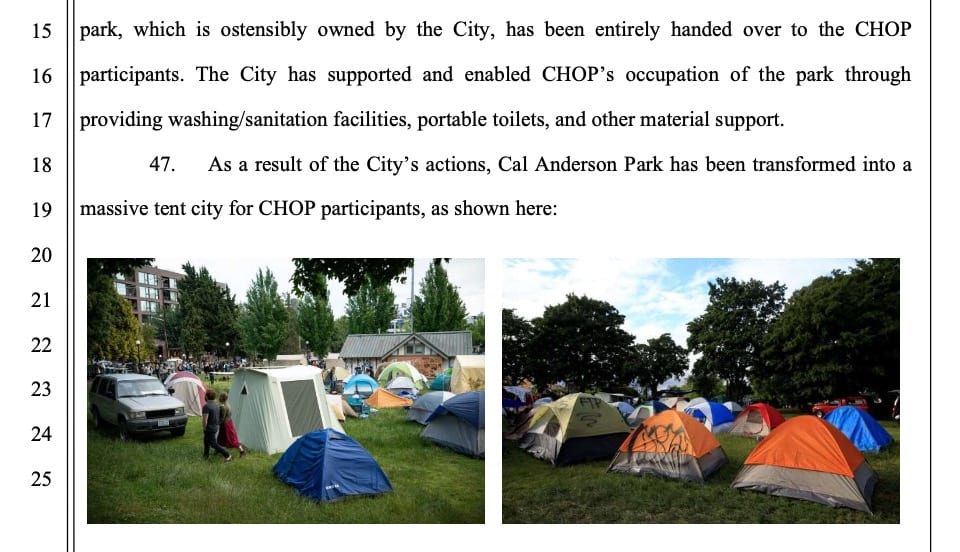 Screen Shot 2020-06-25 at 9.33.15 AM Published Thursday, June 25, 2020 - 9:39 AM at 960 × 552 in ‘Perpetual block party’ — Real estate companies and businesses sue City of Seattle over Capitol Hill protest zone