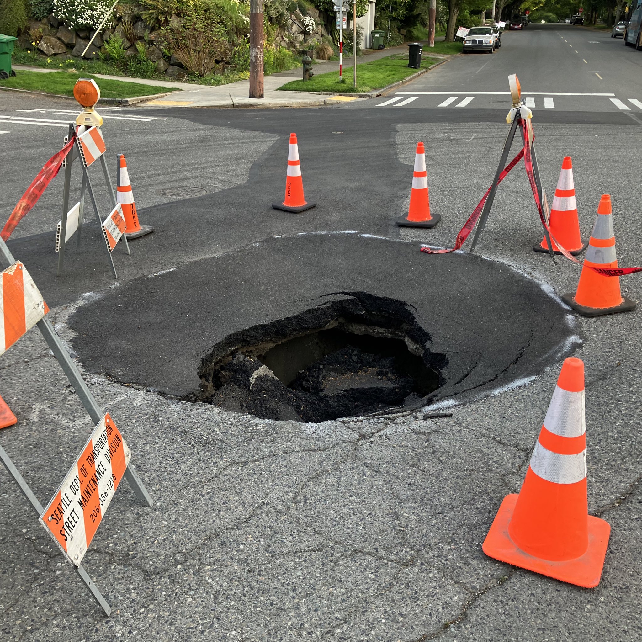 FvQGXsvaAAE8MW1 Published Friday, May 5, 2023 - 9:30 AM at 2047 × 2047 in The Interlaken sinkhole is growing — and nobody knows why — UPDATE Thanks to @GordonOfSeattle for the picture