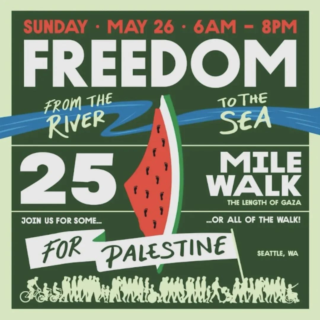 walk Published Thursday, May 23, 2024 - 9:28 AM at 1080 × 1080 in 25-mile March for Palestine to cross Seattle on Memorial Day Weekend