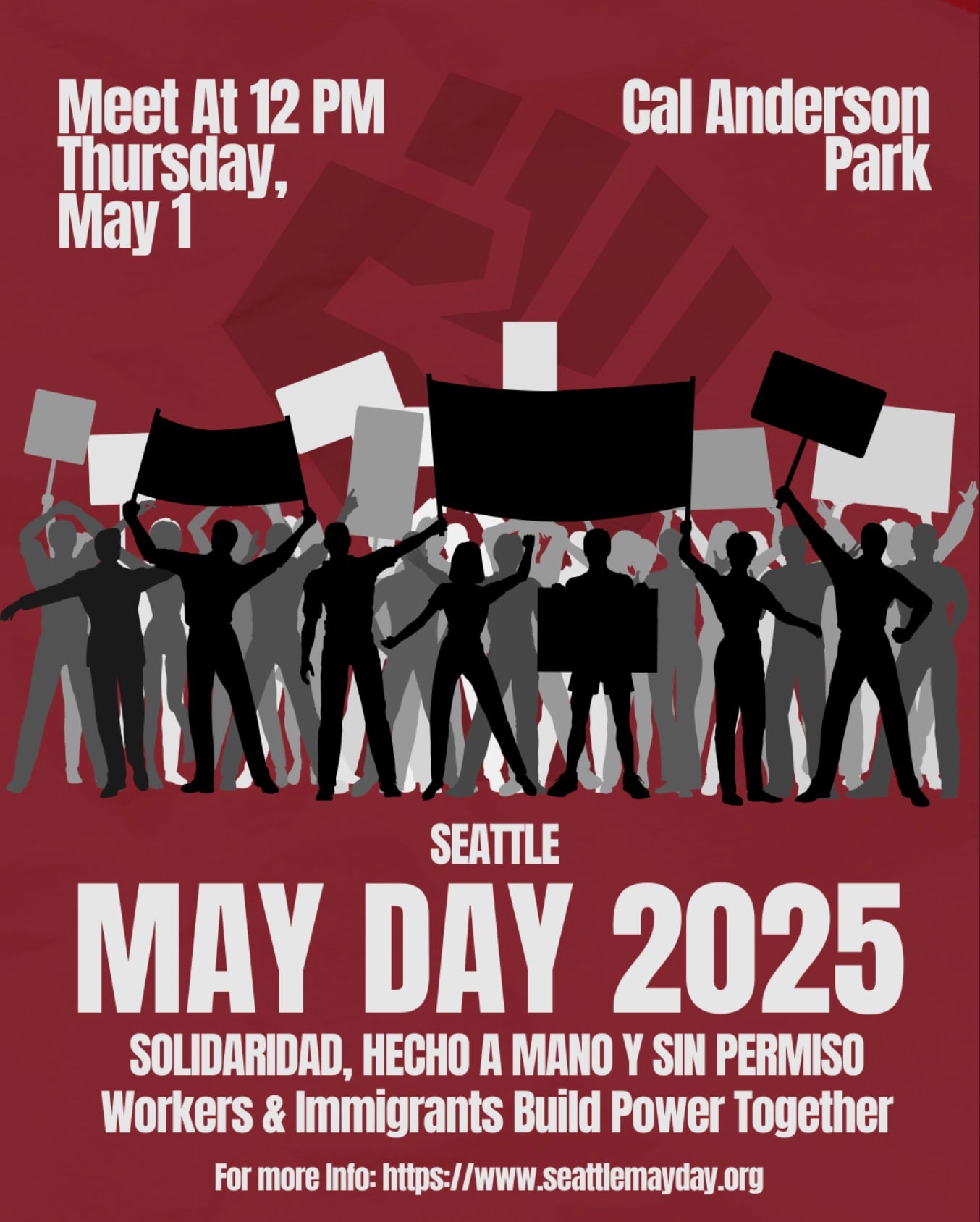 May Day 2025 Published Monday, April 28, 2025 - 10:11 AM at 1354 × 1688 in ‘SOLIDARIDAD, HECHO A MANO Y SIN PERMISO’ — Seattle’s May Day 2025 will step off from Capitol Hill
