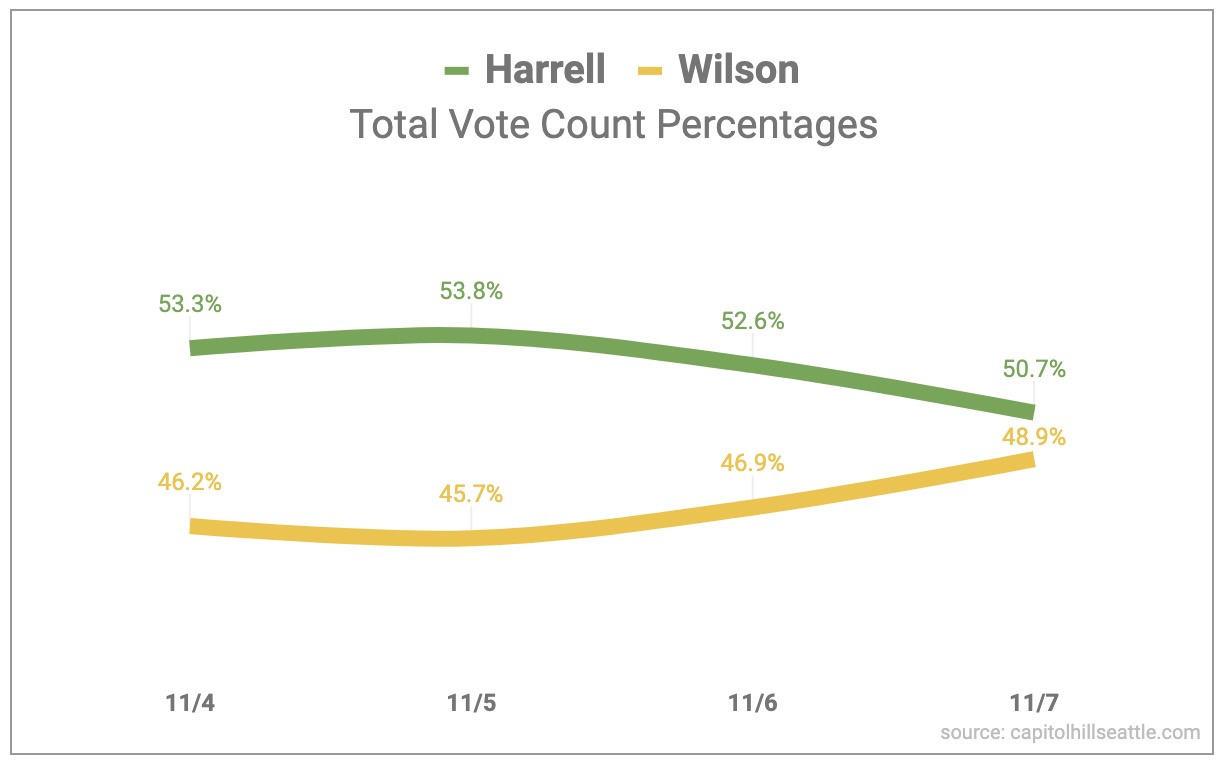 Published Friday, November 7, 2025 - 4:42 PM at 1226 × 768 in Election 2025 — Day 4: Big later-voter count pushes Wilson within striking distance