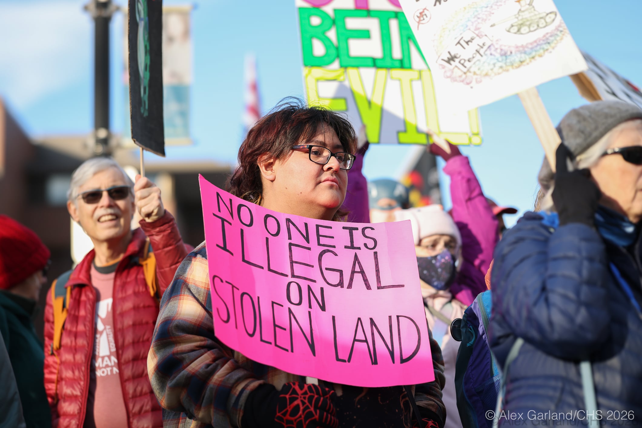 SeattleFreeAmericaProtest2026-23 Published Tuesday, January 20, 2026 - 5:00 PM at 2120 × 1414 in CHS asked 7 people — and 1 pony — on Capitol Hill about why they were protesting against Trump