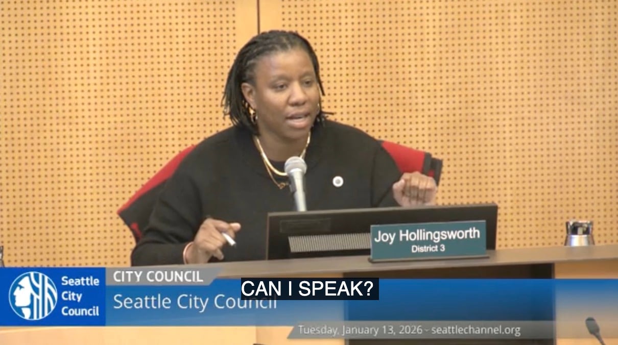 Screenshot Published Wednesday, January 14, 2026 - 10:04 AM at 1210 × 676 in ICE protest disrupts Seattle City Council meeting Screenshot